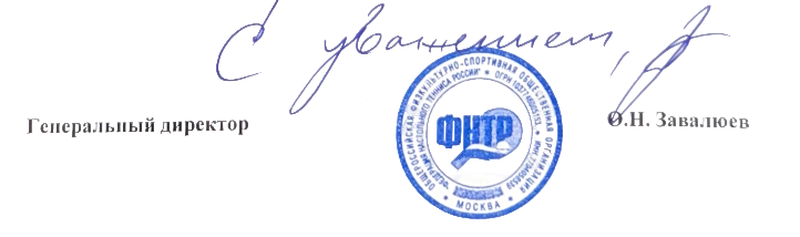 Общероссийская физкультурно-спортивная общественная организация «Федерация настольного тенниса России» выражает искреннюю благодарность Вам лично и в Вашем лице всем членам Общероссийской общественной организации «Российское объединение судей» за высокий уровень организации и проведения соревнований по настольному теннису в рамках «Спартакиады среди региональных отделений».